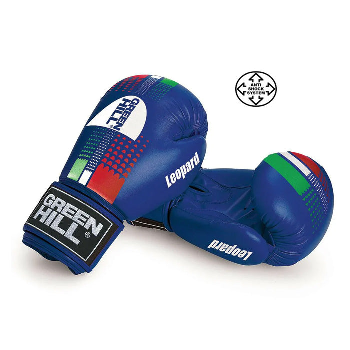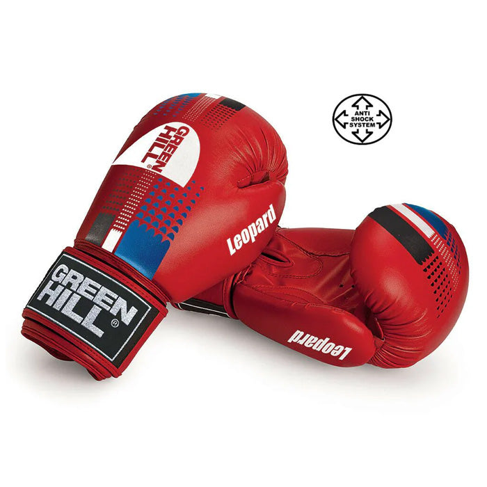 Los guantes Green Hill modelo LEOPARD son la nueva versión de los guantes antichoque, fabricados en vinilo. Su innovador sistema antichoque dispersa el impacto de los golpes. Los guantes Leopard son ideales para sparring, entrenamiento con compañero y sesiones de guantes. El acolchado de espuma de alta densidad ofrece la máxima protección para la mano.