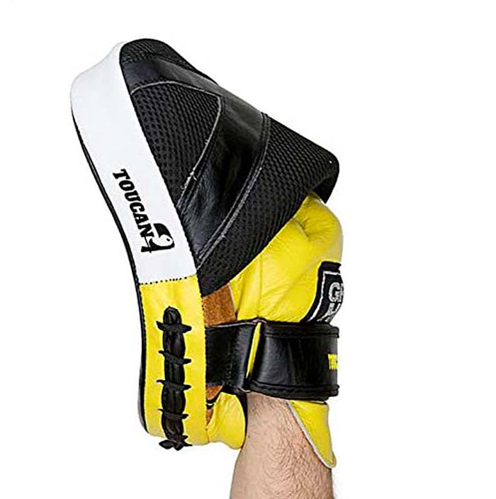 Focus Mitt profesional para calentamientos y sesiones de entrenamiento con el entrenador. Están fabricados con acolchado de espuma EVA, que es flexible y garantiza una absorción de impactos segura y cómoda. La forma ergonómica y el sistema de doble acolchado mantienen firmes las muñecas del entrenador durante el entrenamiento, proporcionando una estabilidad superior de la mano.