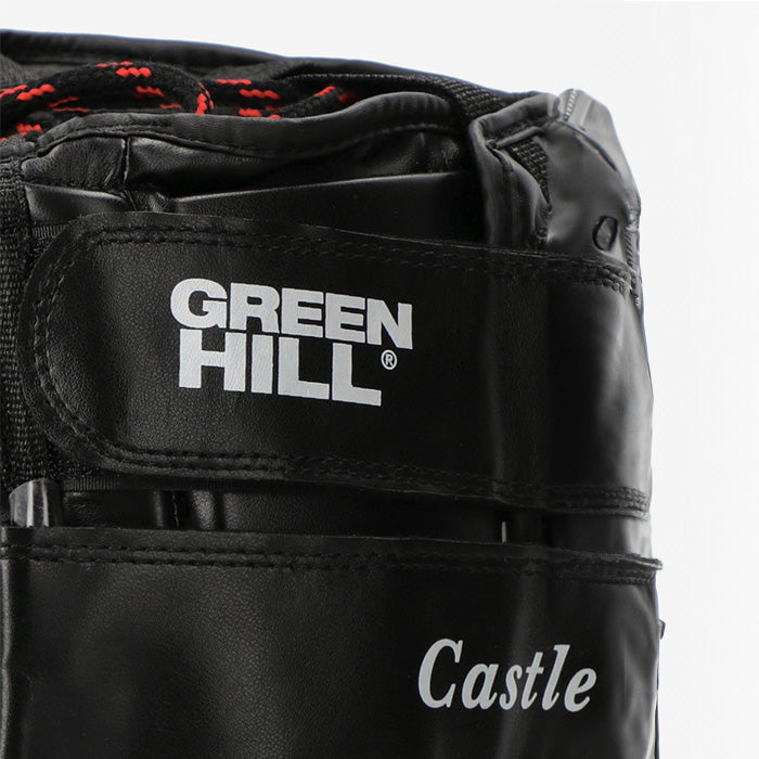 Greenhill presenta estos protectores de cabeza Castle de alta tecnología hechos de cuero sintético ZX de calidad superior con forro de PU que reducen la posibilidad de lesiones en la cabeza al resistir los golpes más fuertes. Face Bar cuidadosamente colocado protege la nariz del atleta de lesiones, sin comprometer la transpirabilidad. El panel de visión de 3X de ancho garantiza una vista sin obstrucciones. Con una protección óptima de 360 grados puedes contar con él con total satisfacción. No solo lo protege de los golpes severos, este producto también está diseñado para brindar una sensación y apariencia de vanguardia. Con una construcción sólida GPGX, permite que el aire fluya hacia la cabeza, lo que mantiene al atleta libre de estrés. El cuero sintético de calidad suprema lo hace increíblemente duradero, consistente, flexible, ecológico y el revestimiento de PU hace que la superficie exterior absorba los impactos y sea resistente a los desgarros. El acolchado de tres capas Pro-impact ayuda al atleta a asumir el castigo final. La cara cerrada con protección extendida para las mejillas y el cierre de velcro en la mandíbula brindan un ajuste ceñido, lo que lo convierte en un casco ideal para comenzar su viaje.