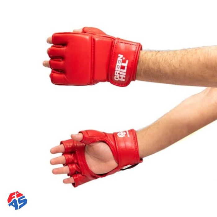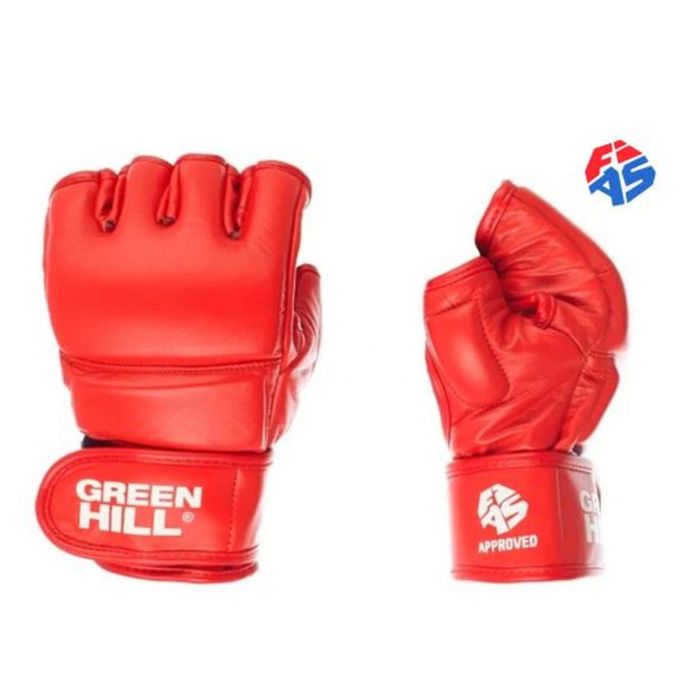 Guantes para combate Sambo "Green Hill" obtuvo el reconocimiento de los sambistas para la fiabilidad y la comodidad de la construcción. La palma de los guantes es lo más abierta posible para el uso más eficaz del equipo de lucha libre. El pulgar está cerrado con una protección apretada. Los guantes tienen un ajuste cómodo en la mano, lo que permitirá que el atleta sea igual de eficaz "baterista" y luchador. El material exterior de los guantes es de cuero auténtico. El lado interior de los guantes es de microfibra. Los guantes están aprobados por la Federación Internacional de Sambo FIAS para la selección adecuada del tamaño del guante, mide la circunferencia de la palma de una cinta de centímetros en el lugar más ancho, eliminando el pulgar de la mano.