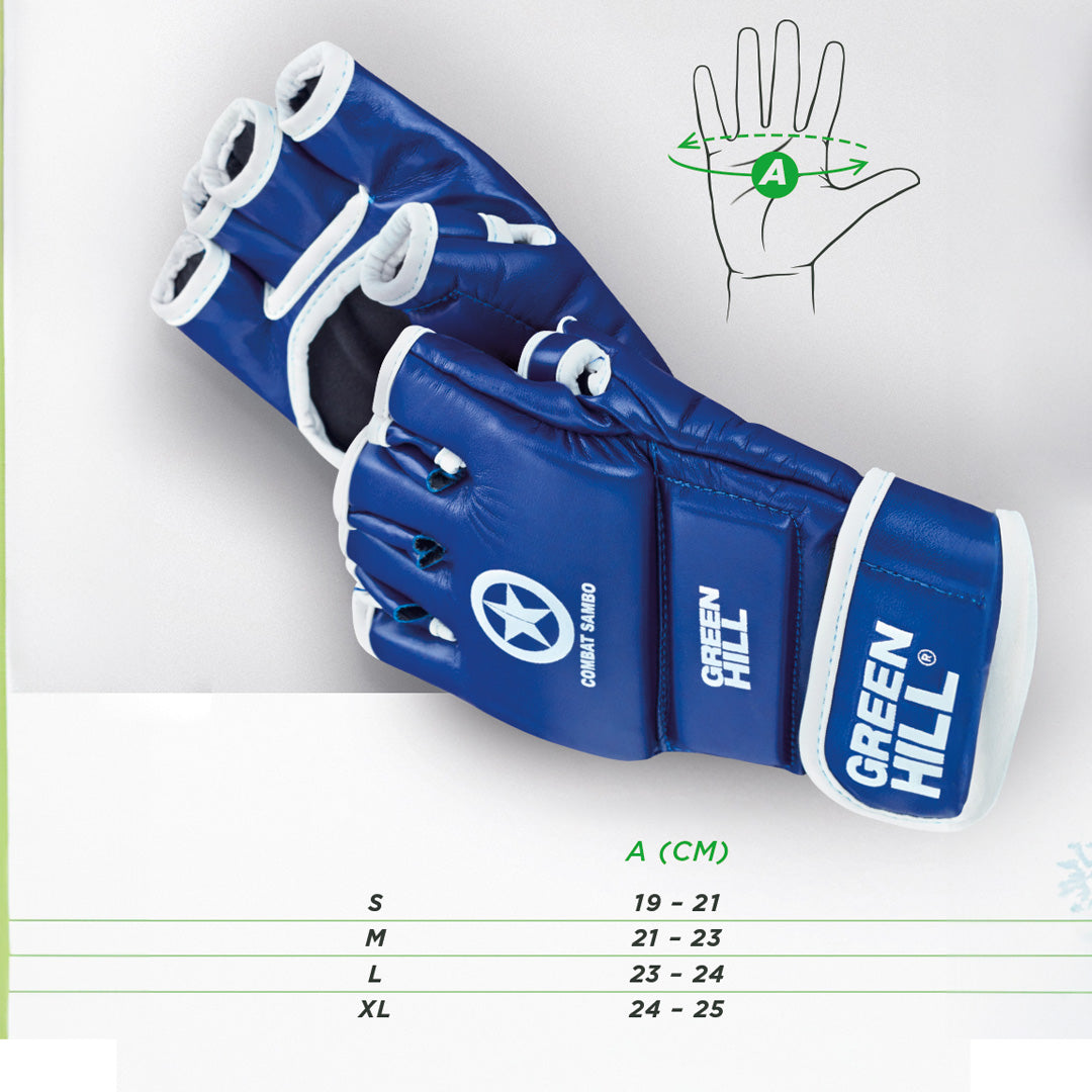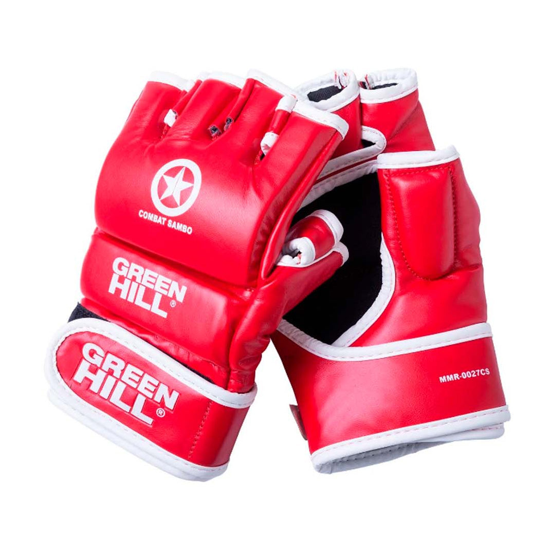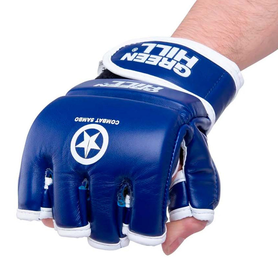 Los guantes para MMA Combat Sambo MMR-0027CS son unos guantes para artes marciales de la popular marca Green Hill. Los guantes para peleas sin reglas y grappling Green Hill están hechos de cuero artificial. Los guantes, gracias a los dedos abiertos y al engrosamiento del puño, son adecuados tanto para golpes como para viradas. Con estos guantes, puedes actuar en competiciones y entrenar en sambo de combate, MMA, grappling y otras artes marciales mixtas.