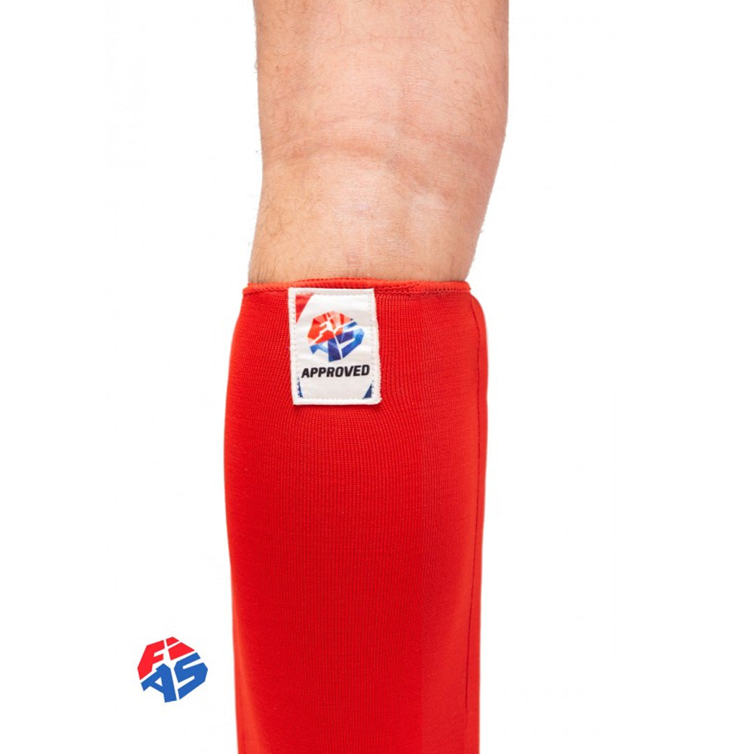 La aprobación de FIAS indica que las espinilleras cumplen con los estándares requeridos establecidos por la Federación Internacional de Sambo para competencias y torneos. Las espinilleras aprobadas por FIAS deben cumplir con criterios específicos en cuanto a diseño, color y material, entre otras cosas.